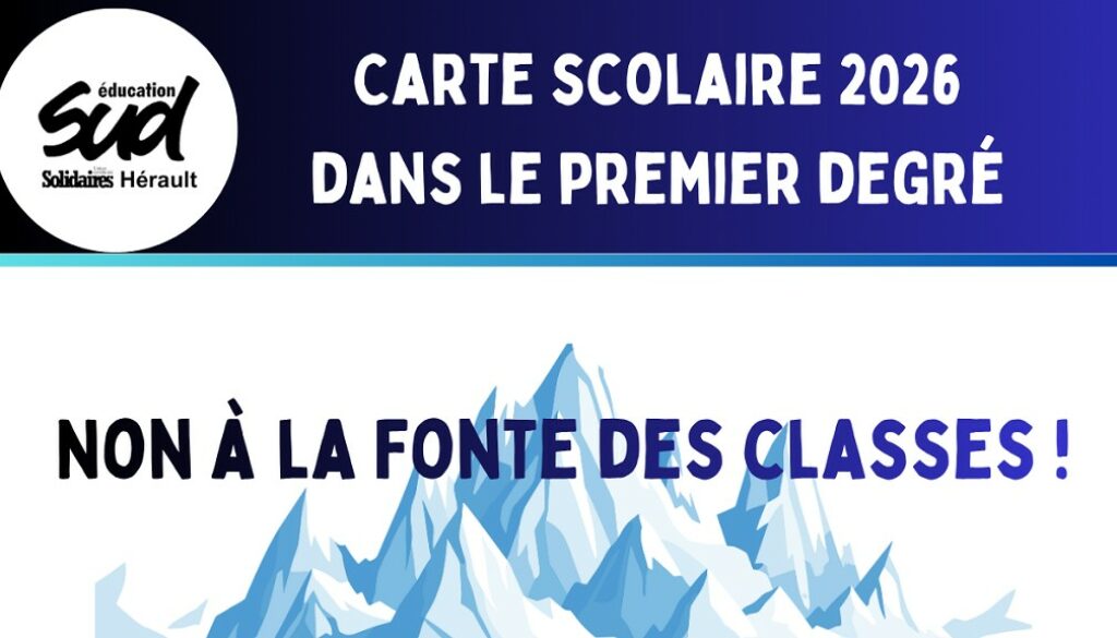 CARTE SCOLAIRE 2026 DANS LE PREMIER DEGRE : NON À LA FONTE DES CLASSES !