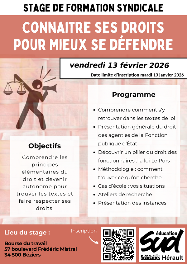 En cas de problème, préviens le syndicat : syndicat@sudeducation34.org