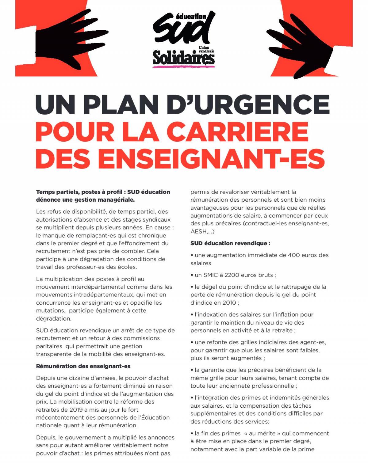 SUD éducation revendique :